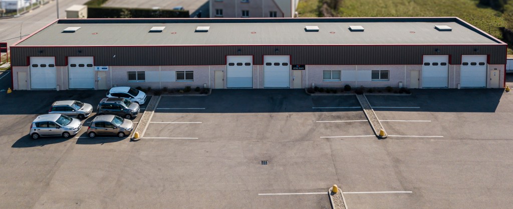 Bâtiment de 6 lots, avec une superficie totale d’entrepôt de 520m², bureaux et sanitaires de 80m² et 14 places de parking.